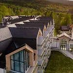 Located nearly 25 minutes' walk from Kopa Cable Car, the 5-star luxury Green Mountain 5* Hotel Karpacz offers amenities such as a sundeck and a shared lounge. Providing access to such entertainment venues as the Winterpol Biały Jar Ski Resort 2.1 km away, this smoke-free hotel has 3 restaurants.